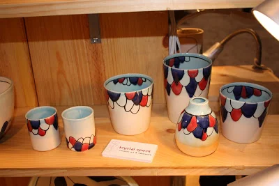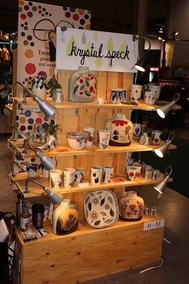 The elusive Krystal was not impressed with my early morning paparazzi attack. So here is her booth with her delightful ceramic pieces!
