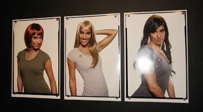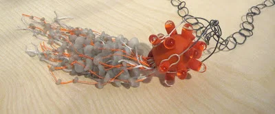 The work I'm doing in the MFA program at NSCAD is all about hair and (racial and cultural) identity. I made some brooches out of synthetic hair extensions using Victorian techniques, and then Kristy Depper photographed me wearing wigs that match the jewellery. (Is hair a body part, or is it adornment?) The intention was to be a bit silly and awkward, and to see how it would feel wearing "someone else's" hair.